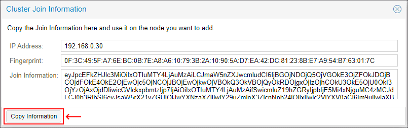 Click the Copy Information button to copy the cluster join information to your clipboard.